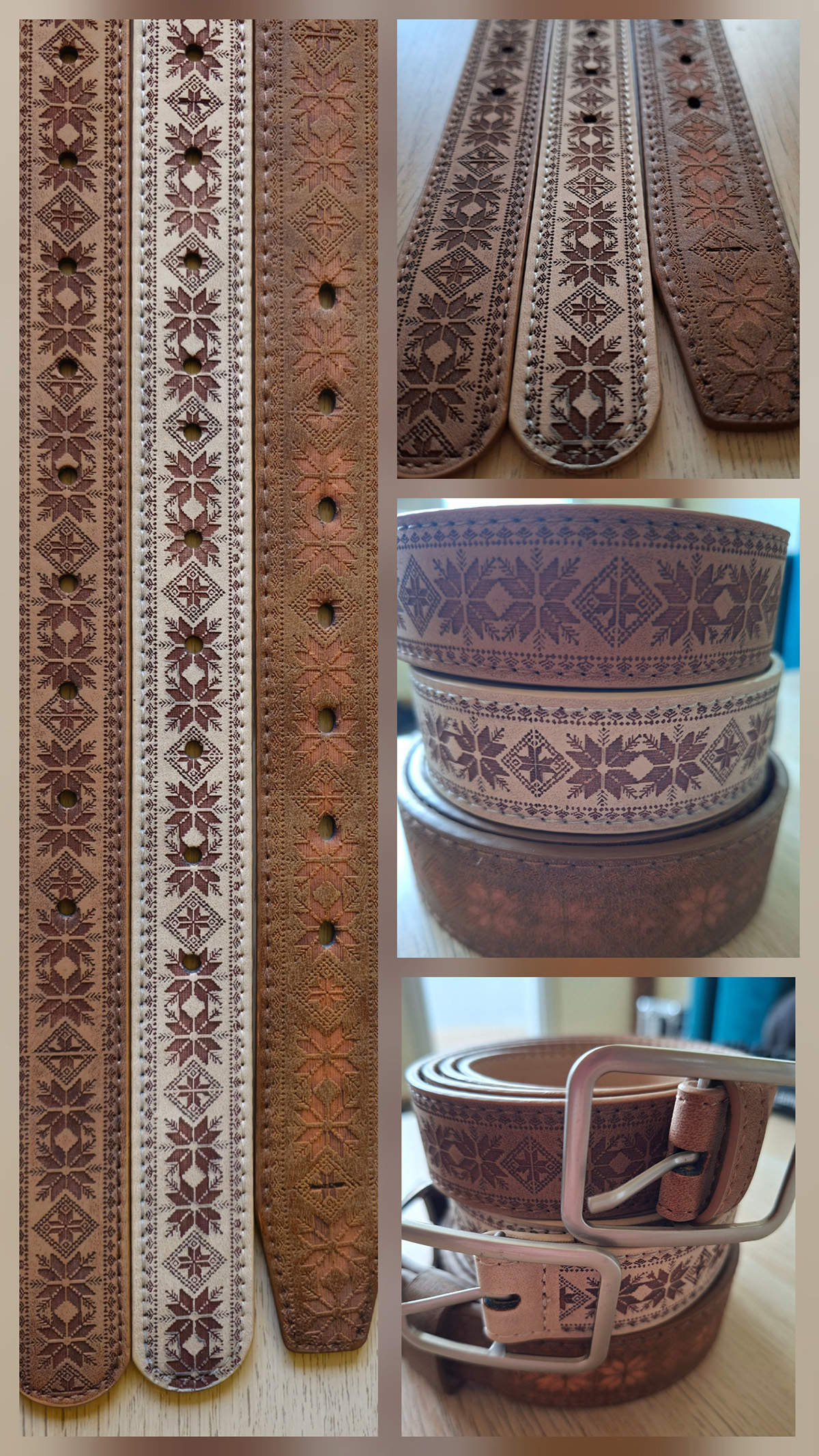 Examples are bottle openers with magnets, wooden tables, pouches, belts and many more.