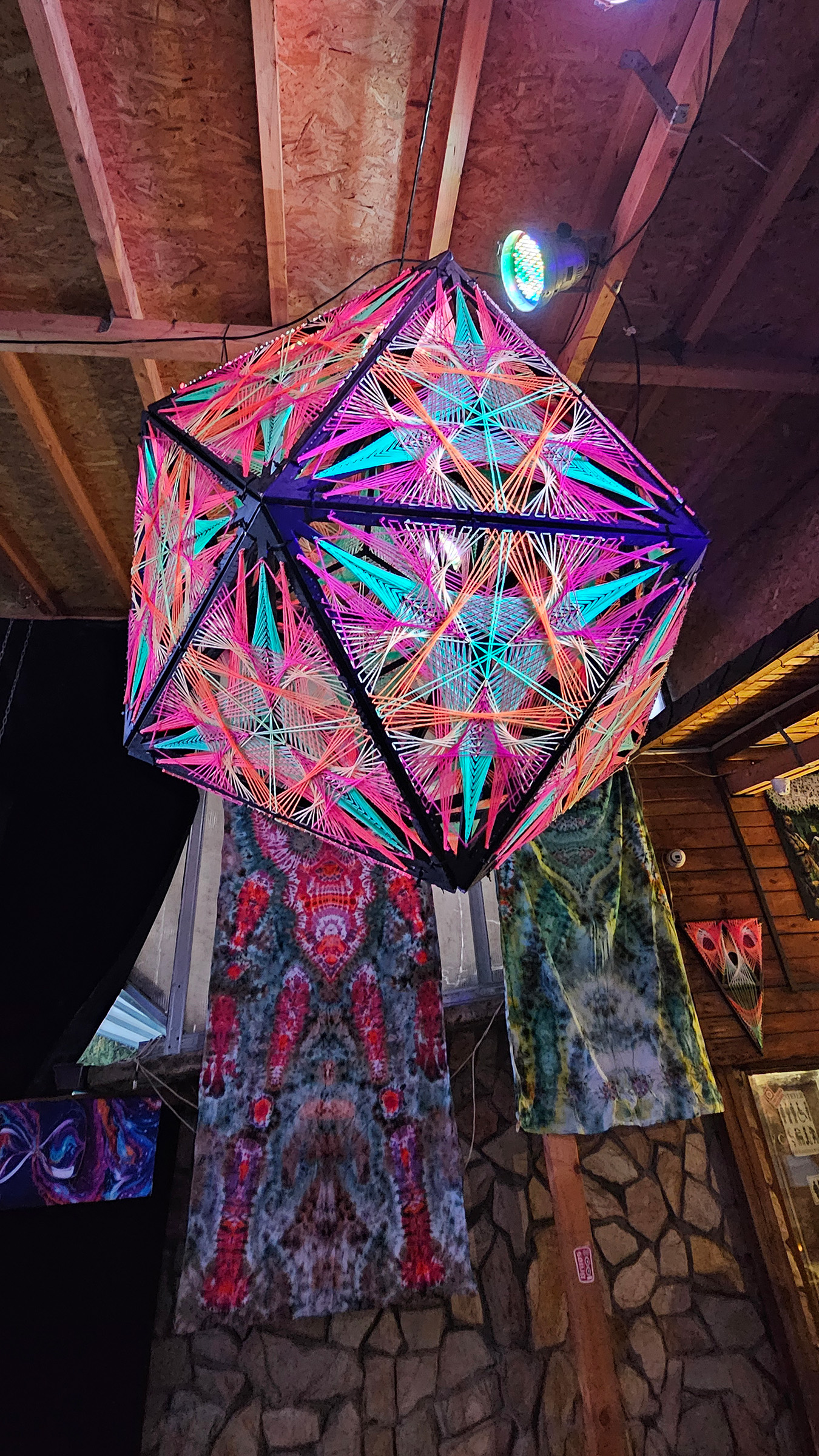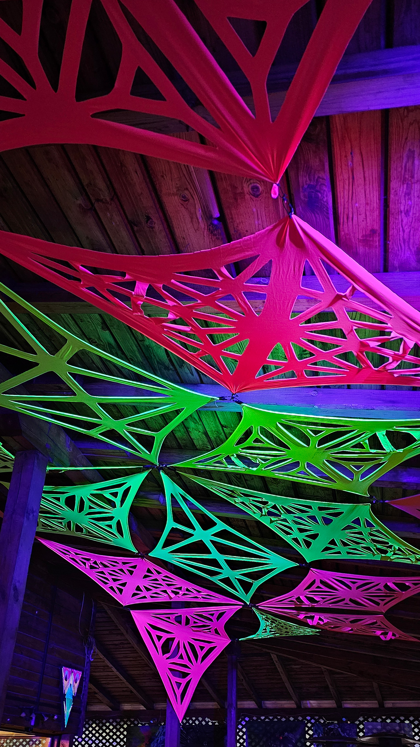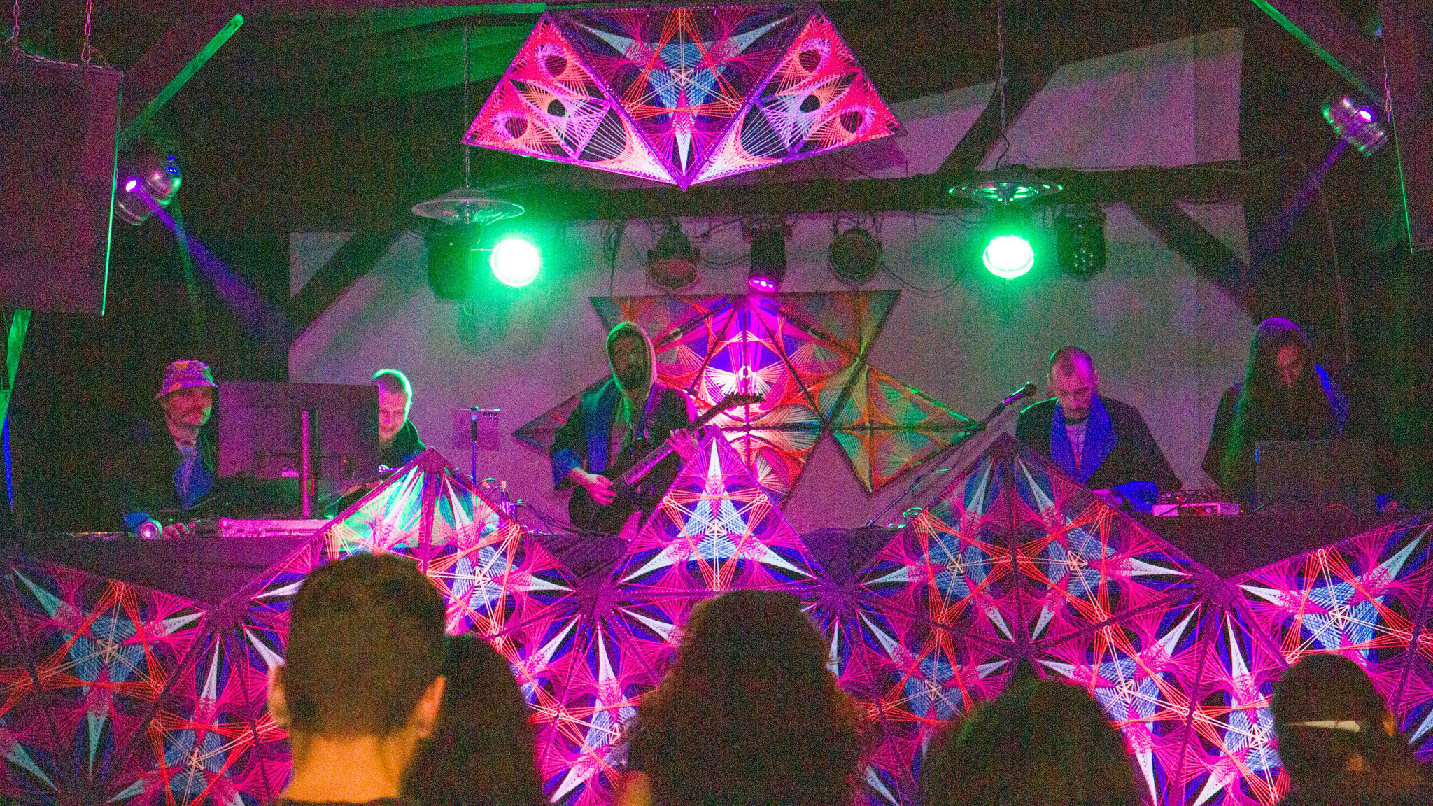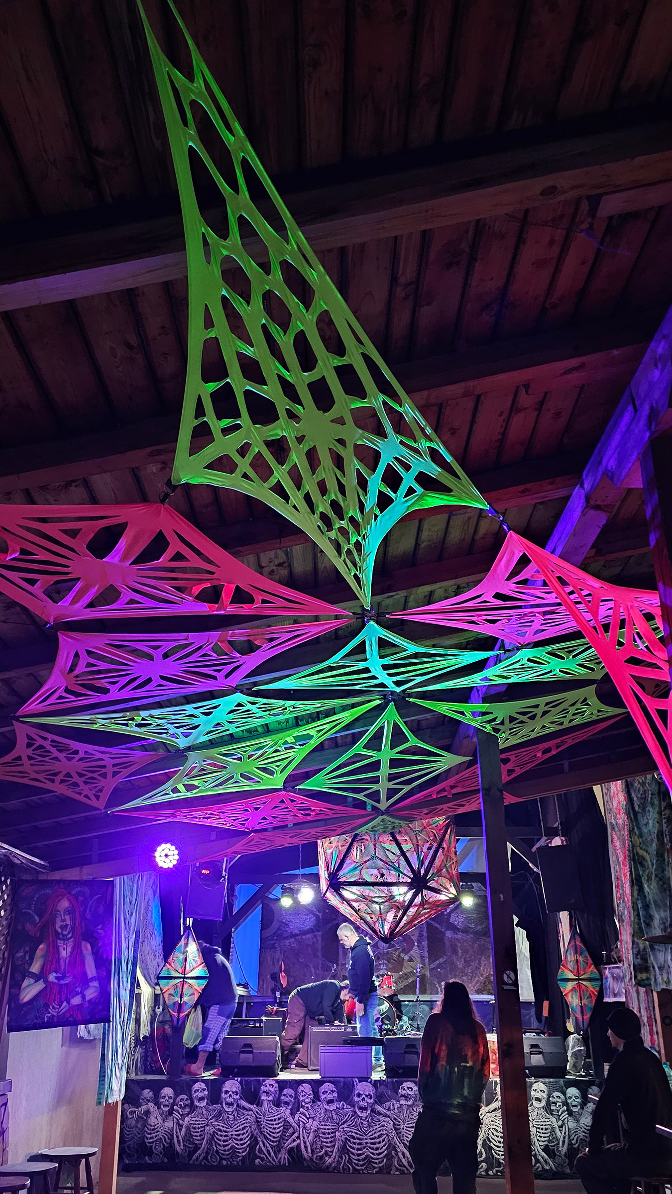 We made a flexible front stage covering with multiple string art patterns to make sure every band, dj, performer and shop have the perfect atmosphere.